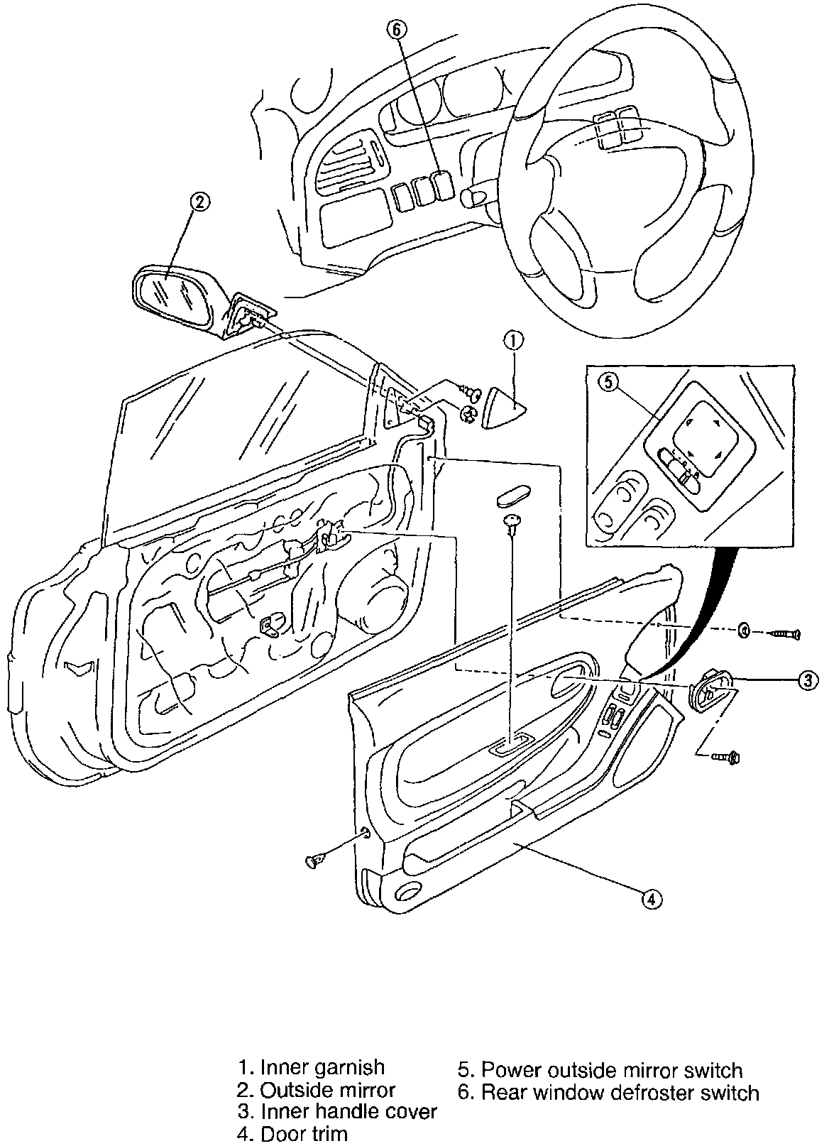 Remove in the order shown in the figure. To remove the rear window defroster switch, remove the meter