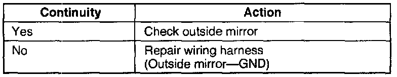 2. Disconnect the outside mirror connector and check for continuity between the (B) terminal wire of the outside mirror connector and ground.