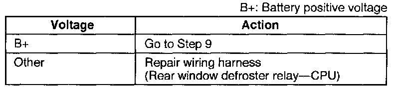 2. If correct, repair the wiring harness (CPU-rear window defroster switch).