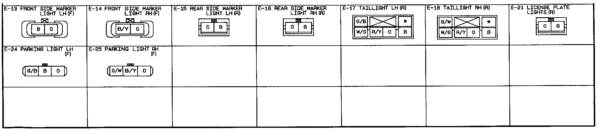 Front Side Marker Lights, Parking Lights, Taillights, Rear Side Marker Lights, License Plate Lights- Connectors:
