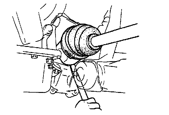 3. Separate the drive shafts from the transaxle by prying with a bar inserted between the shaft and the case. (Left side)