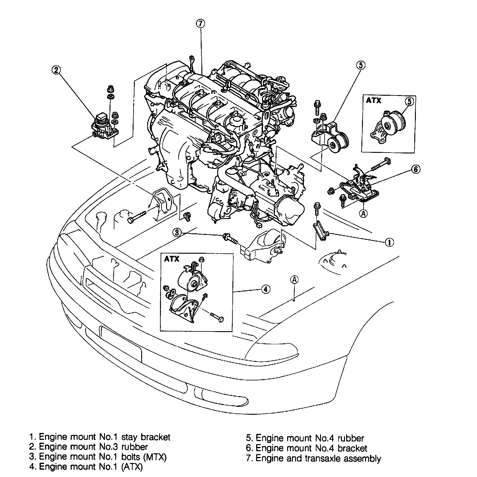 2. Remove the engine mount No.2 nuts.