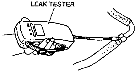 16. Check for leaks from cooler pipe / hose connections by Using a leak tester. If there are no leaks, go to step 17. If leak is found at loose joint, tighten the joint and check for leaks again. If there is still a leak at the same joint, discharge the refrigerant and then repair the joint. Repeat the charging procedure from step 7. If there are no leaks after tightening the joint, go to step 17.