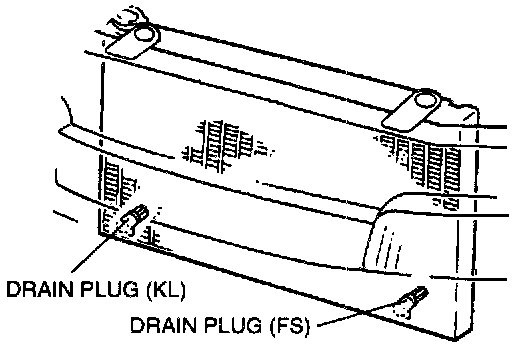 2. Remove the radiator cap and the coolant filler cap (KL) and loosen the radiator drain plug.