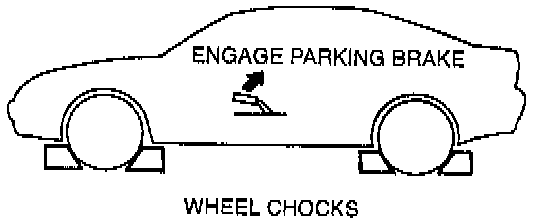 2. Apply the parking brake and position wheel chocks securely to prevent the vehicle from rolling.
