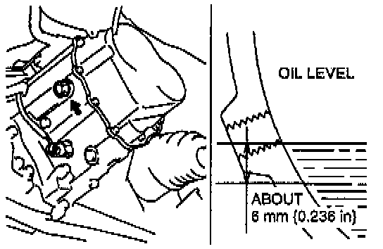 3. Verify that the oil level is near the lower edge of the plug port.