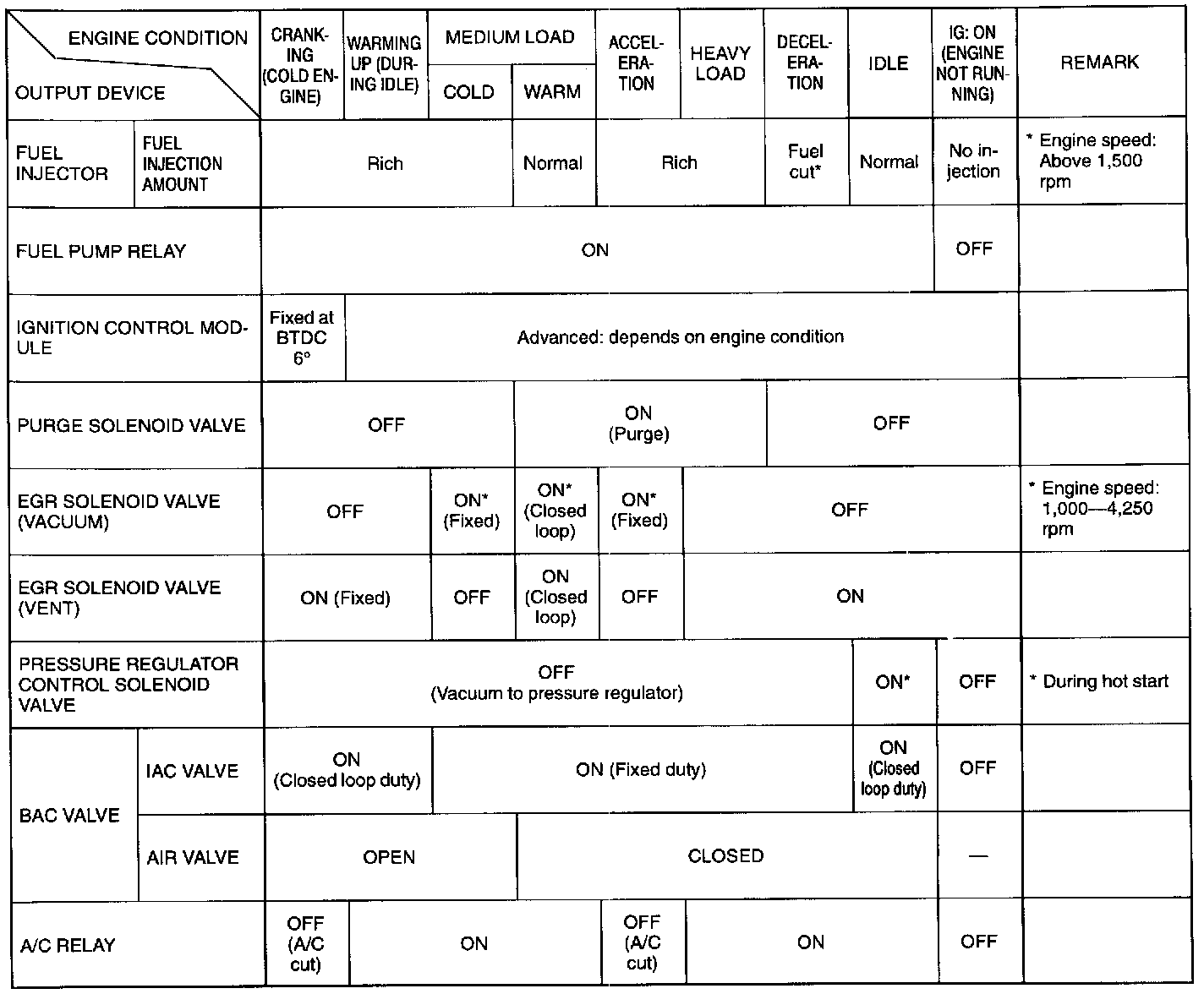 Output Compared To Engine Condition: