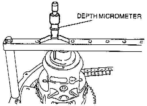 78. Use a depth micrometer to measure the distance from the top of the gauge bar to the face of the drive sprocket. Repeat on other side of the turbine shaft. Average these two numbers. This is dimension A.