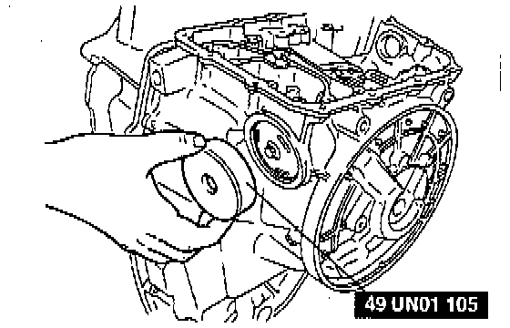 83. Remove the gauge bar and preload tool. Apply petroleum jelly to the selected #10 drive sprocket thrust washer and install on the converter housing. Remove the drive sprocket.