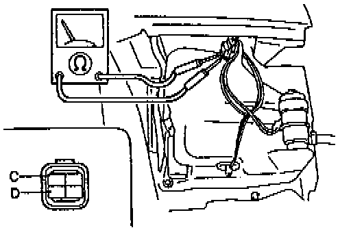 2. Check for continuity between terminals C and D of the sensor as shown.