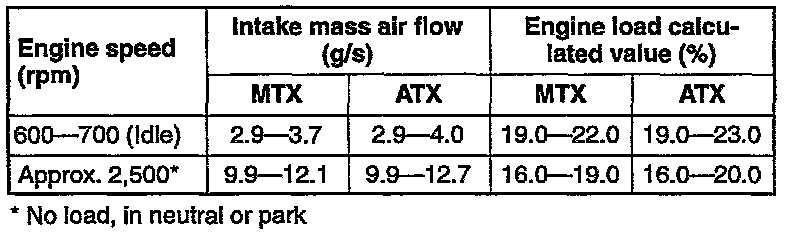 NOTE: The scan tool shows the volume air flow rate and load value.