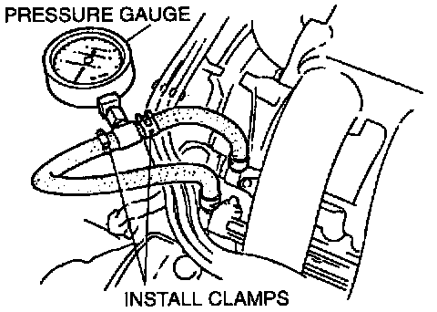 3. Install hose clamps to secure the fuel pressure gauge to the fuel filter and the main hose.