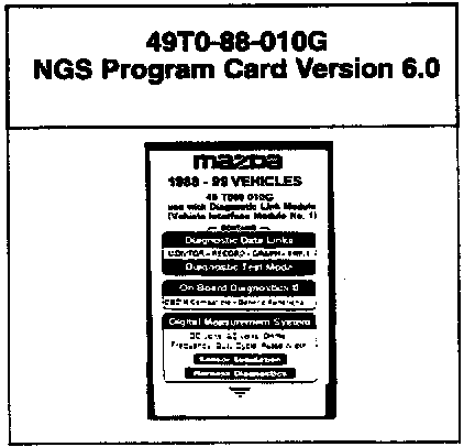 Per Service Bulletin Cat. ST 001/98, issued 02/23/98, your service department currently has two reprogrammable New Generation Star (NGS) cards, an older Version 4.0 program (P/N 49T0-88-010E) and a current Version 5.0 program (49T0-88-010F). On September 11, 1998, V5.0 will supersede to V6.0 (P/N 49T0-88-010G) as a new Mazda Required Tool (MRT) to properly service MAZDA vehicles.