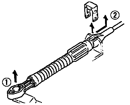 3. Remove the spring pin and clip and disconnect the selector cable.