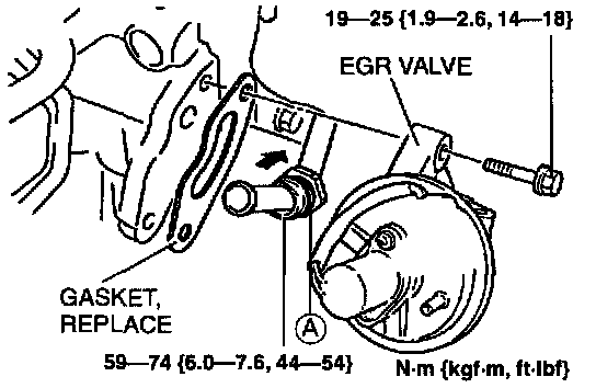 NOTE: If nut A is difficult to remove (stuck), first remove the following and then remove the nut together with the EGR pipe from under the vehicle.