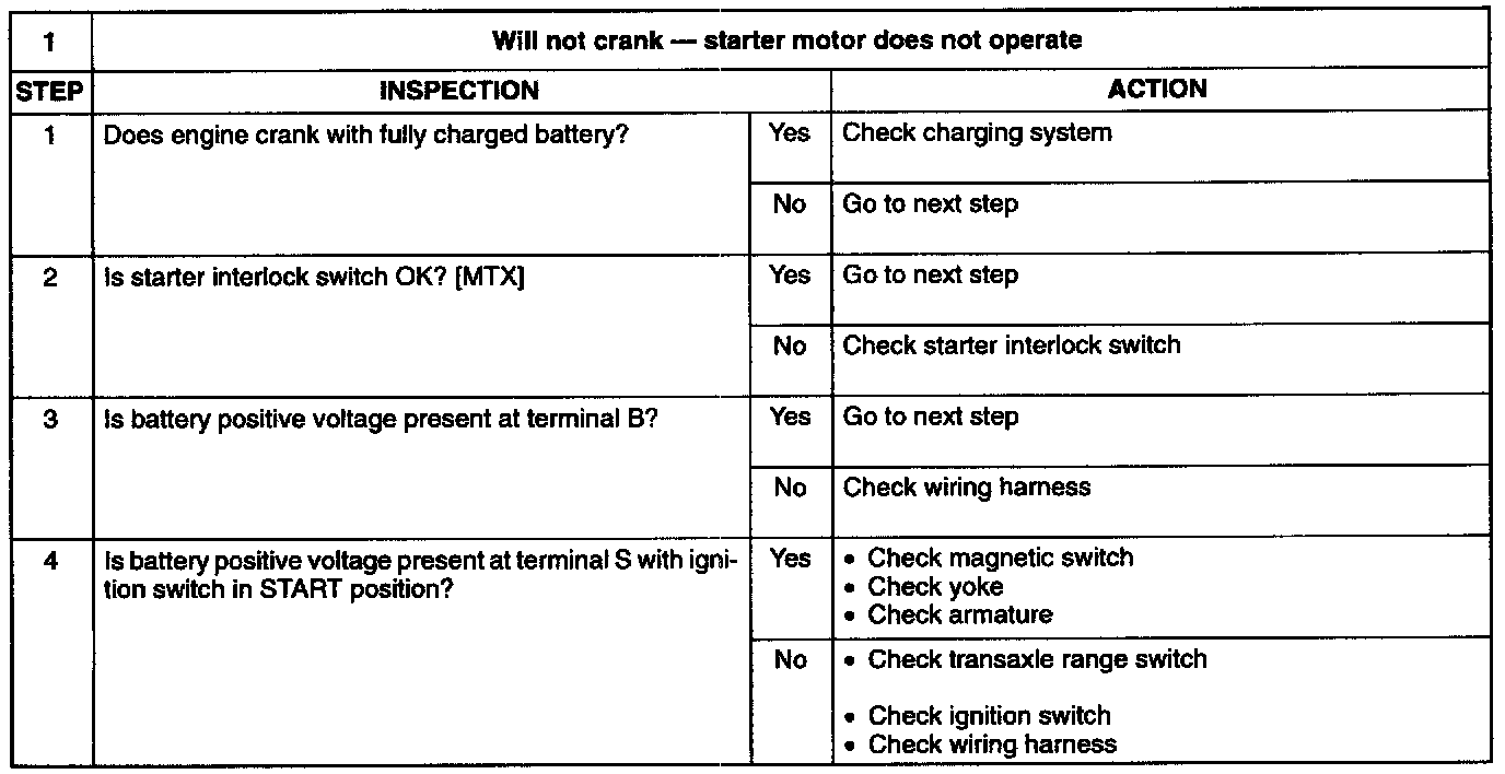 No. 1 Will Not Crank -- Starter Motor Does Not Operate: