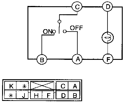 3. Connect battery positive voltage to terminal J and ground to terminal C of the cruise control switch.