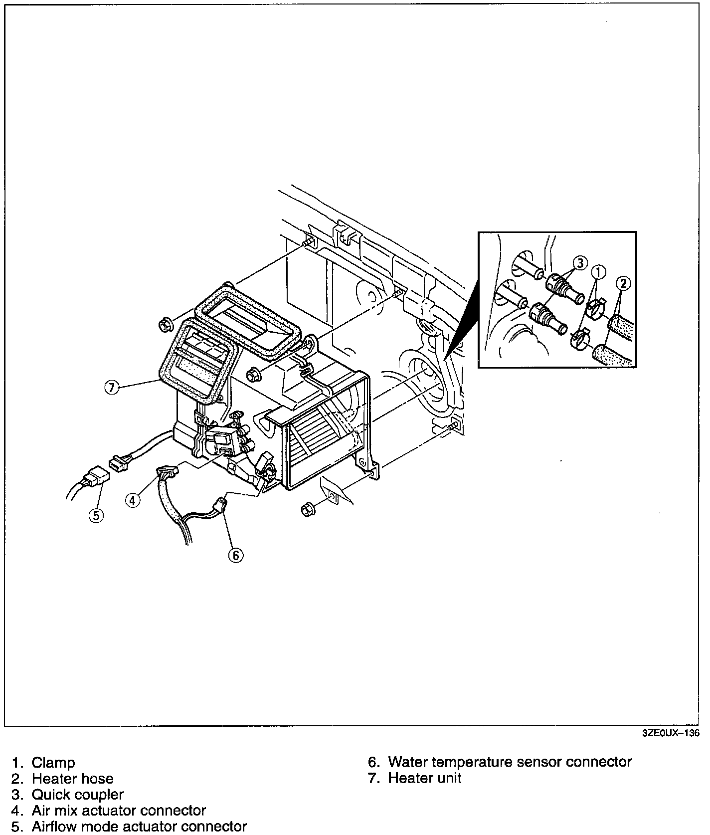 2. Check for cracks, damage, and coolant leakage. Repair or replace the heater core if necessary.