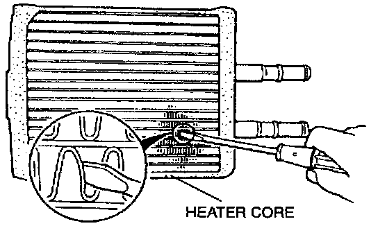 4. Verify that the heater core inlet and outlet are not distorted or damaged. Repair with pliers if necessary.