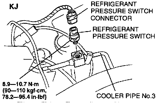 3. Remove the refrigerant pressure switch from cooler pipe No.3.