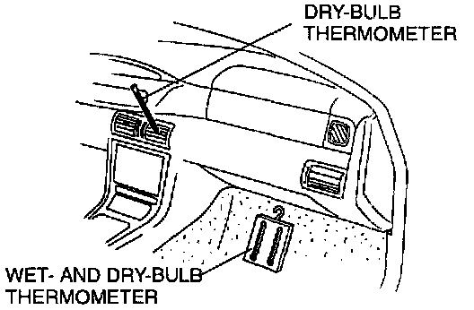 9. After the air conditioning stabilizes, read the wet- and dry-bulb thermometer, and then calculate the relative humidity by using the graph shown.