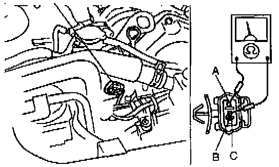 2. Measure the resistance between terminals A and B by using an ohmmeter.