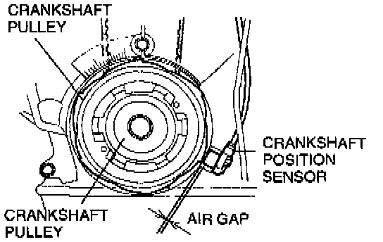 2. Measure the air gap between the crankshaft pulley and the crankshaft position sensor by using a feeler gauge.