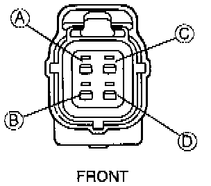 2. Measure the resistance between heated oxygen sensor terminals D and C by using an ohmmeter.