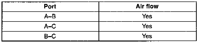 4. Apply battery positive voltage to terminal A and ground terminal B of the EGR solenoid valve (vent). Verify that air flows as shown below.