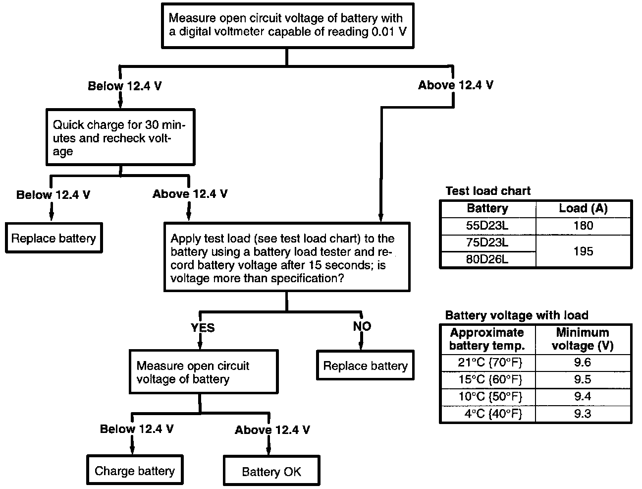 4. After the battery has been recharged, measure the battery positive voltage and verify that the battery keeps specified voltage for more than 1 hour.