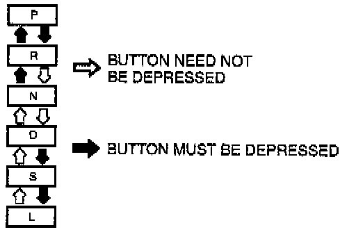 b. With the brake pedal depressed, verify that there is a "click" at each range when shifted in the pattern shown.