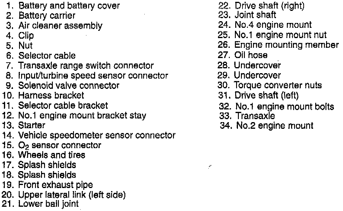 1. Loosen the SST (engine support) and lean the engine toward the transaxle.