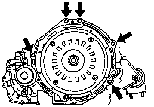 Hold the drive plate and remove the torque converter nuts.