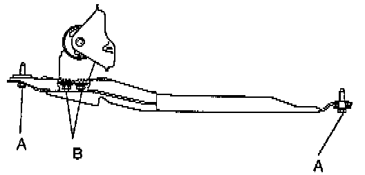 3. Tighten nut (B) as shown to 75 - 104 Nm (55 - 77 ft. lbs.).