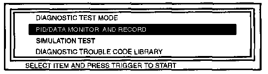 3. Select the PID/DATA MONITOR AND RECORD function and press TRIGGER.