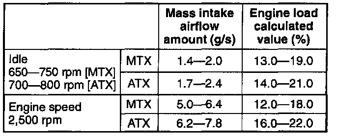 NOTE: The scan tool shows the mass airflow rate and load value.