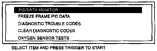 2. Select the PID/DATA MONITOR function and press TRIGGER.