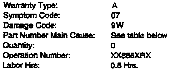 Part Number Main Cause: