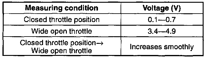 6. If not as specified, adjust the throttle position sensor.