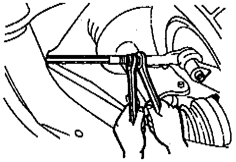 3. Loosen the left and right tie rod locknuts and turn the tie rods equally. Both tie rods are right threaded, so turning the right tie rod toward the front of the vehicle and the left toward the rear increases toe-in.