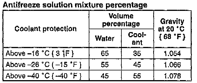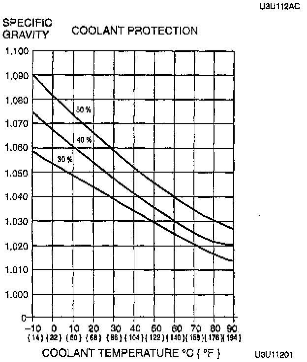 1. Measure the coolant temperature and specific gravity with a thermometer and a hydrometer.