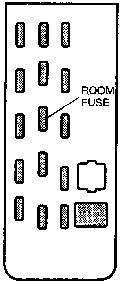 NOTE:^ When the ROOM fuse is burnt or removed, the malfunction indicator lamp illuminates. If the ROOM fuse is replaced or installed with the ignition switch at ON, the malfunction indicator lamp will continue to illuminate.