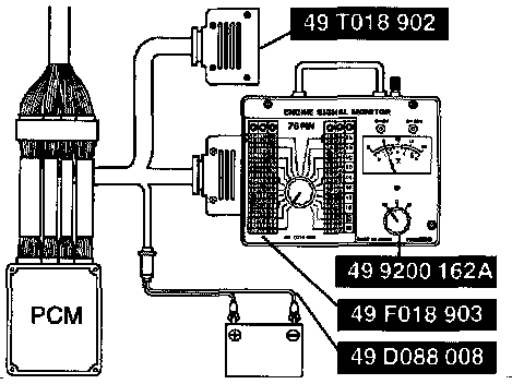 1. Connect the SST engine signal monitor between the PCM and the vehicle's PCM connector by using the SST adapter harness.
