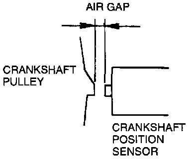 4. Measure the air gap between the crankshaft pulley projection and the crankshaft position sensor by using a feeler gauge.