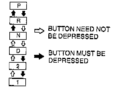 b. With the brake pedal depressed, verify that there is a "click" at each range when shifted in the pattern shown.