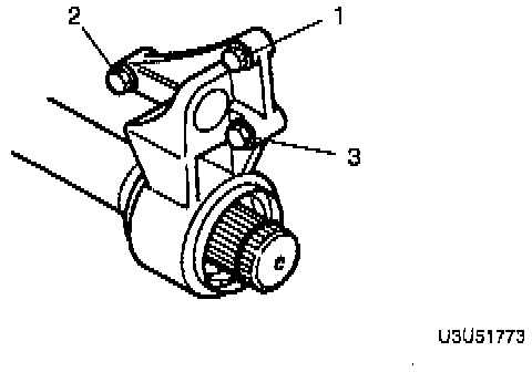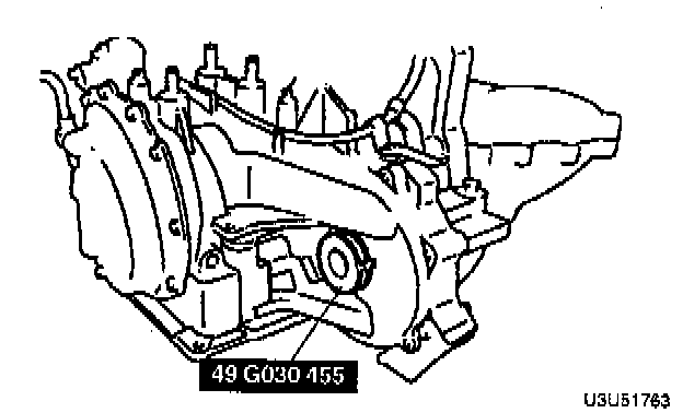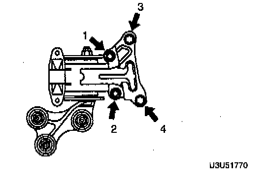 1. Install the engine mount bracket to the transaxle, as shown in the illustration. Tighten to 38 - 51 Nm (28 - 38 ft. lbs.).