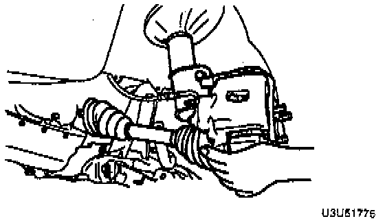1. Separate the right side drive shaft from the transaxle by prying with a bar inserted between the outer ring and the transaxle.