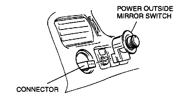 1. Disconnect the negative battery cable.2. Insert a tape-wrapped, flathead screwdriver between the power outside mirror switch and the meter hood.