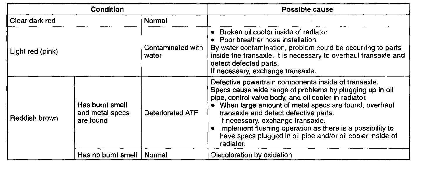 AUTOMATIC TRANSAXLE FLUID (ATF) INSPECTION [LA4A-EL]ATF Condition Inspection