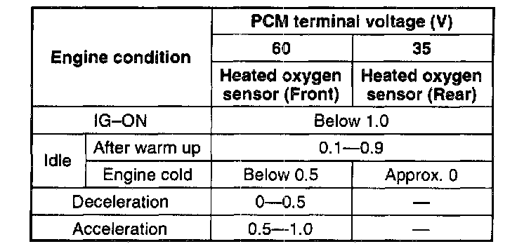 (5) Measure the voltage at PCM terminal 35 and 60.
